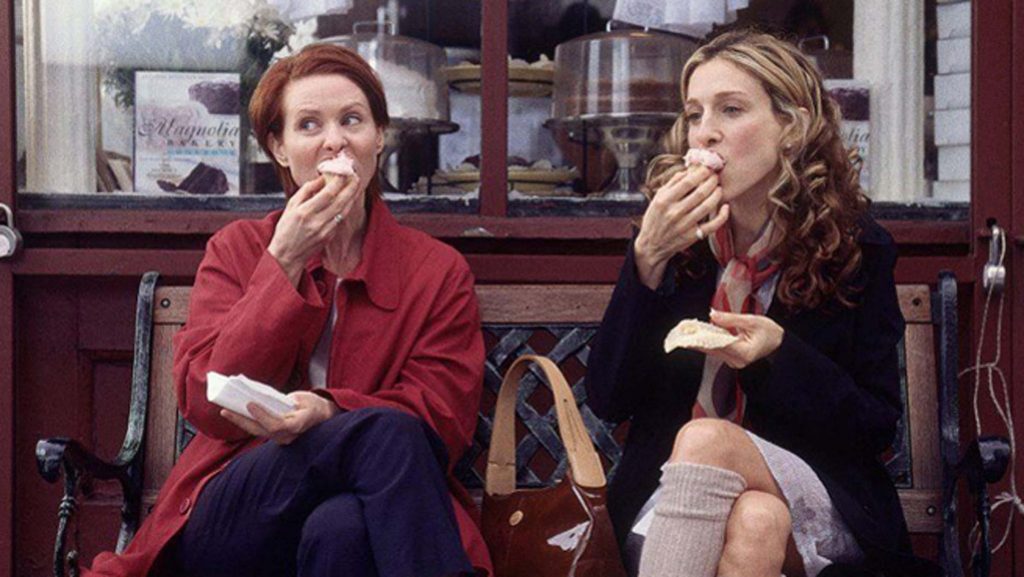 Fast alle Shootings fanden in echten Cafés, Restaurants und auf den Straßen von New York statt. Die Arbeit stört ständig den Fans, die die Schauspieler jagen. Cafe "Magnolia Baker", zu dem Kerry und Miranda Cupcakes und Kaffee kaufen, wurde für die ganze Welt bekannt.