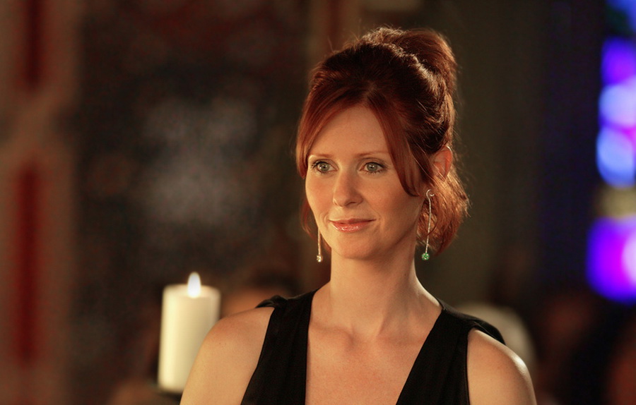 Die Hauptheldenkerry im Szenario wäre ein Brunette, aber im letzten Moment hat sie eine helle Haarfarbe genehmigt. Die Schauspielerin musste nicht lackiert sein, was nicht über Sinthia Nixon sagt, was im Leben einer Blondine. Für die Rolle von Miranda musste sie die Haarfarbe auf dem Rot wechseln. Und doch, anstelle der üblichen Ohrringe, putte Sintia einen Klammer, weil ihre Ohren nicht punktiert sind.