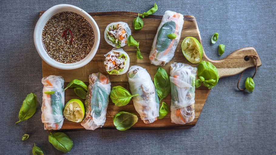 Leichtes und sanftes Gericht, das einen romantischen Shooter schätzen wird. Traditionell werden sie in China in der Kanone des neuen Jahres gegessen, noch als "Frühlingsfeder" bekannt. Dies sind kleine Pfannkuchen aus einem transparenten Reisteig, in dem es verschiedene Fleischkombinationen, Meeresfrüchte, Nudeln, Gemüse und Früchte gibt.