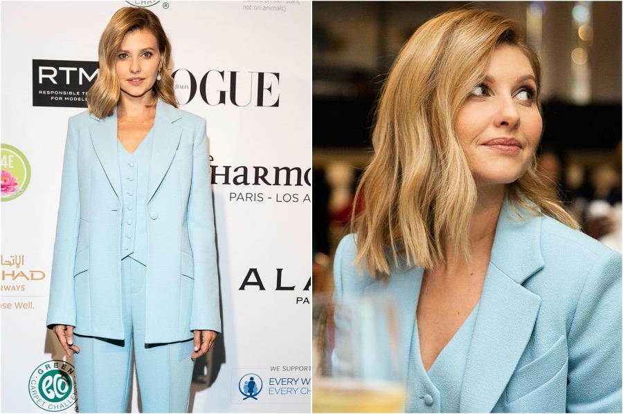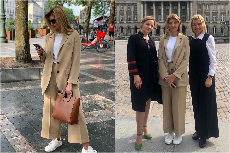 Auf Monochrome schrieben wir oben, aber Monochrome kann hell sein. Ein völlig rotes Bild ist auch ein Monochrom. Olena Zelensk gibt Vor-Pastell- und neutrale Farbtöne. Auf diese Weise kann es Ihre Kleiderschränke mit angenehmen Farben auffrischen, die selbst bei ernsthaften Begegnungen angemessen sind.