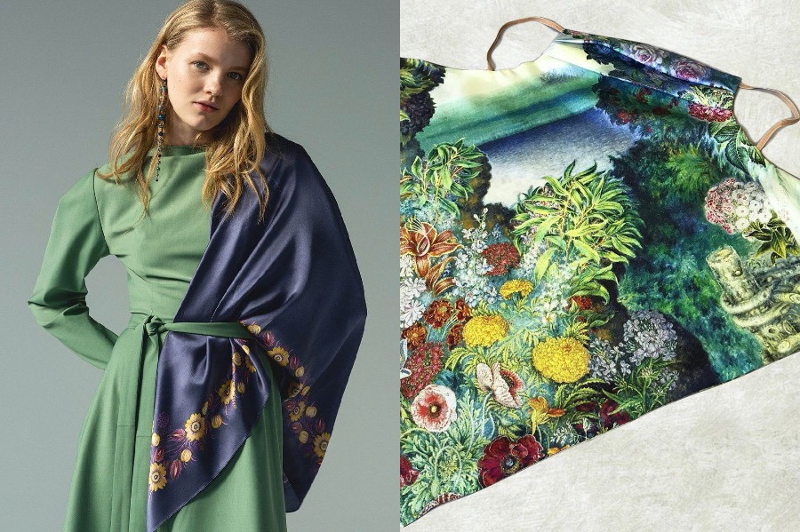 Ukrainische Marke.Oliz Beginnen, um ein Taschentuch zu schaffen, das original Vintage-Designs mit modernen Methoden reproduzierte. Ihr Ziel war es, alte ukrainische Schals wiederzubeleben und sie wieder modifizieren zu lassen. Aber nichts Ewige und alte Tücher reichen nicht aus. Daher begannen sie, Designs zu schaffen, die auf den Mustern traditioneller ukrainischer Schals basieren, aber sie auf moderne Scheinwerfer von italienischer Seide reproduzieren.