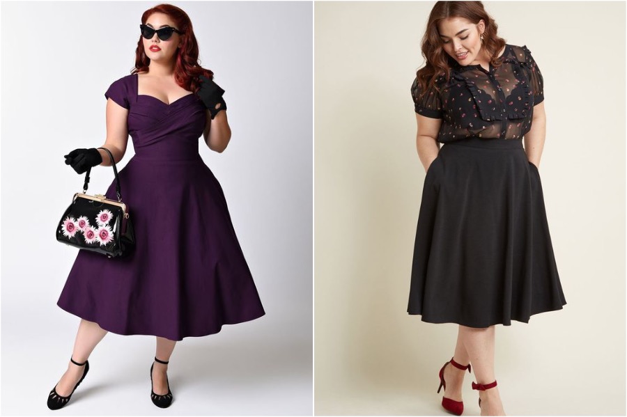 In den 50er und 60er Jahren betonte die Kleider perfekt, weibliche Formen. Wenn Sie also kein modernes kompummelbares gerade Kleid haben, versuchen Sie, ein echtes Retro-Kleid oder einen Retro-Stil zu finden. Solche Kleider sind ideal für üppige Formen, weil sie mit der Idee der Silhouetten von Frauen genäht werden. Unter den Retro-Kleidern lässt sich leicht viele Modelle für Ihren Geschmack finden.