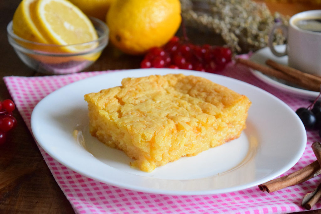 Kürbis-Gitter auf einer kleinen Reibe, Fügen Sie Kefir, Zucker, Gefängnis, Ruptur und Zitronenzähler hinzu. Alles ist gut gemischt und lag in gefettetem Sahneform. Verteilen Sie den Teig und legen Sie 45 Minuten lang auf 180 ° C ein. Während der Kuchen backt, bereiten Sie den Sirup vor: Um Zucker, Wasser und Zitronensaft hinzuzufügen, kochen Sie zum Kochen, kochen Sie 3 Minuten. Bereite Gemeinde gießt Sirup und geben Sie 30 Minuten lang stehen. Und dass der Kuchen noch saftiert war, können Sie seine Nacht im Kühlschrank ertragen.