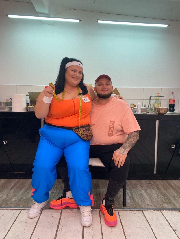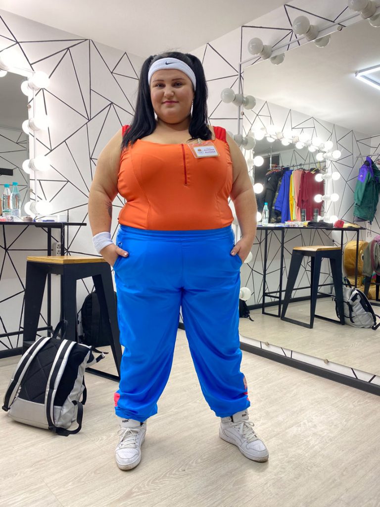 Elena erschien in einem hellen grünen Kleid: Körper und Kleider, schwarze Leggings und komfortable Turnschuhe. Ein leidenschaftlicher und energischer Tanzrichter schätzte nicht zu hoch, aber ein mutiges Paar wurde sofort ein Favorit des Projekts, zumindest in sozialen Netzwerken.