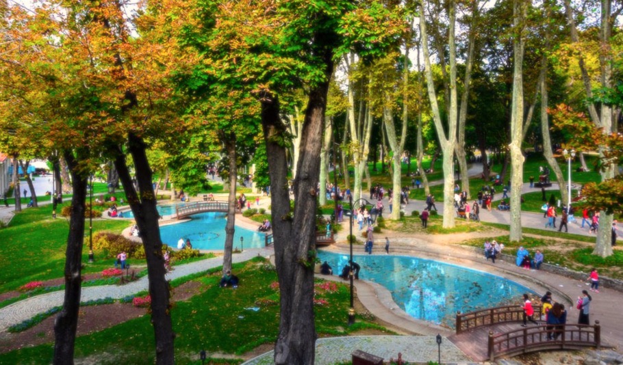 Es ist Zeit ein kleiner Spaziergang und atmen Sie frische Luft. In der Nähe des Palastes befindet sich einer der ältesten Parks von Istanbul, der gerne alle Touristen und Bewohner der Stadt einlädt. County zum Beobachtungsdeck, sehen Sie den unglaublichen Blick auf das Goldene Horn und die Bosphorus Bay.