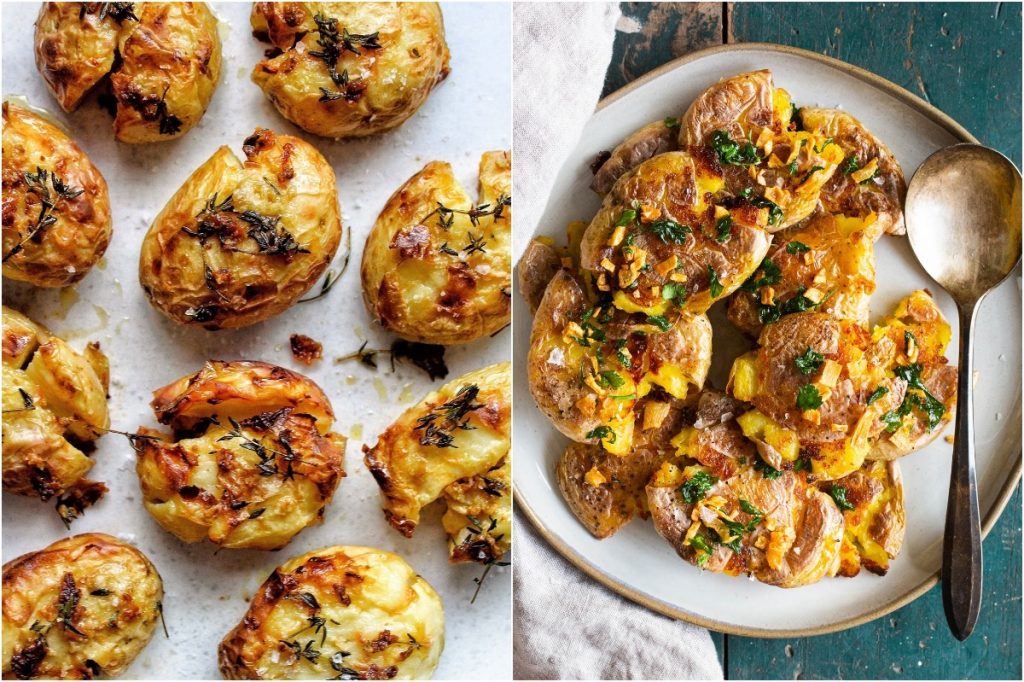 Anstatt Kartoffeln auf Scheiben zu schneiden und backen, verbrennen Sie die Tore der Kartoffeln, um fast vollständige Bereitschaft zu leisten. Mittelwasser, Wasser Die Kartoffeln mit Olivenöl und Streuen Sie Gewürze, verbreiten Sie sich in ein Teller in einem Backofen und ziehen Sie jede Kartoffel leicht aus. Glauben Sie mir, es ist so lecker und genau das wird jetzt Ihre Lieblingskartoffelkartoffeln sein.
