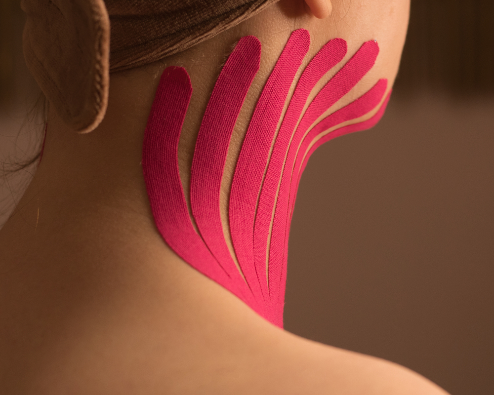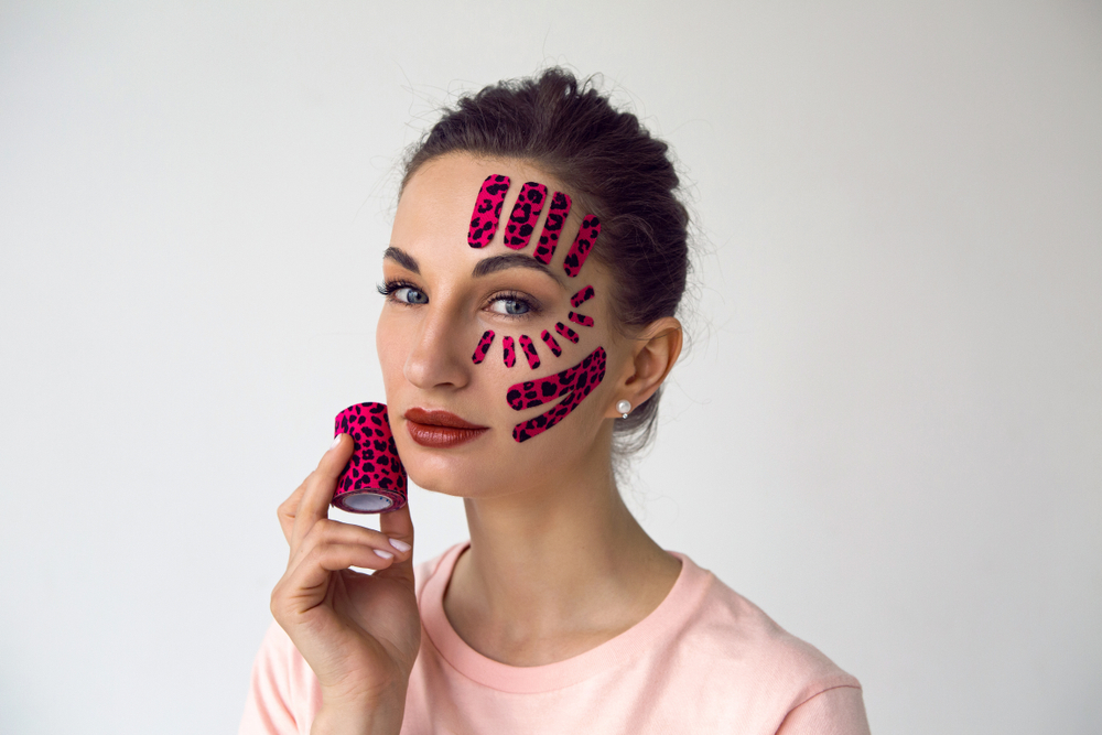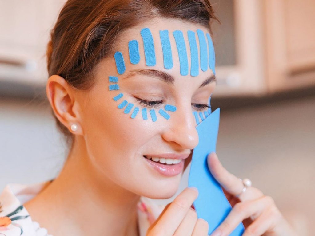 Das Band (TEP) ist durch Massagelinien auf das Gesicht geklebt, er hilft die Haut über den Muskeln, was die Durchblutung erhöht und den Abfluss der Lymphe stimuliert. Das Verfahren hilft, die Muskeln zu entspannen, überschüssige Flüssigkeit aus dem Gewebe auszugeben. Spezielle Kunststoffe befestigen sich an den Tempeln, Kinn, ein unteres Drittel des Gesichts.