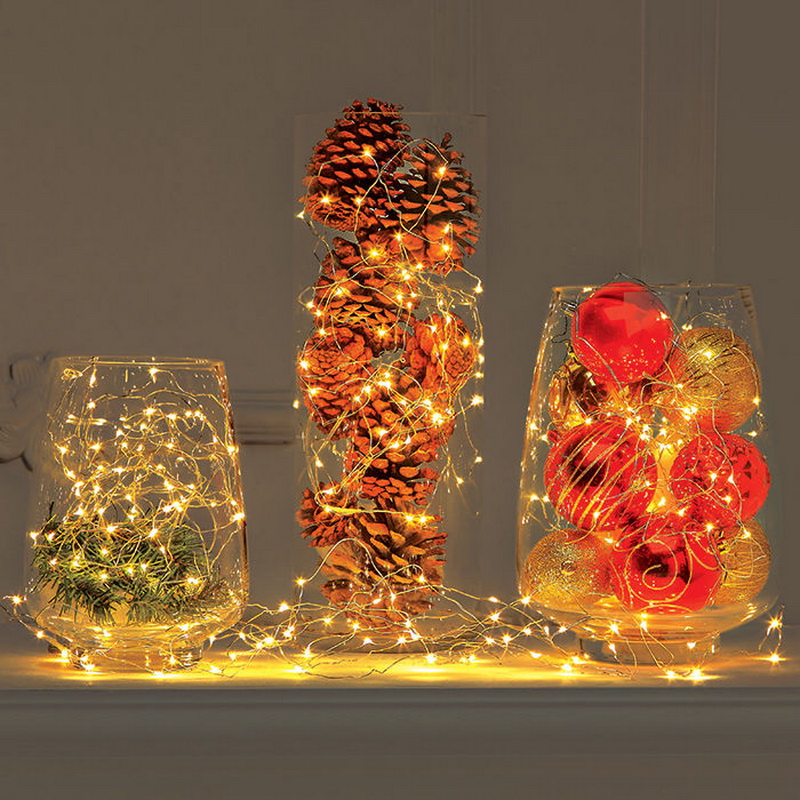 Diese Feiertagszelle kann nicht nur traditionell auf einem Tannenbaum oder einem Fenster platziert werden, sondern auch irgendwo im Haus. Dies dazu zu tun, nur ein paar kleine autonome (auf Batterien) Girlanden und transparente Behälter aus einem Glasvase aus Kunststoffverpackungen aus Pralinen.