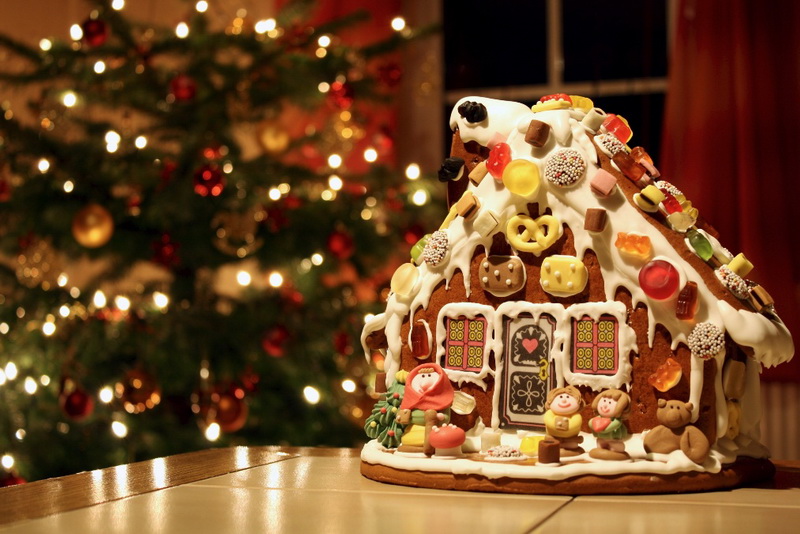 Urlaubsdekoration, die in Ihrer Scheune nicht stattfindet. Sie können es nach einer Neujahrsnacht freudig essen. Sie können ein solches Haus aus gesinterter Lebkuchen und Zucker-Fundry machen. Das Internet verfügt über ausreichend verschiedene Rezepte und Varianten dieser essbaren Landschaft.