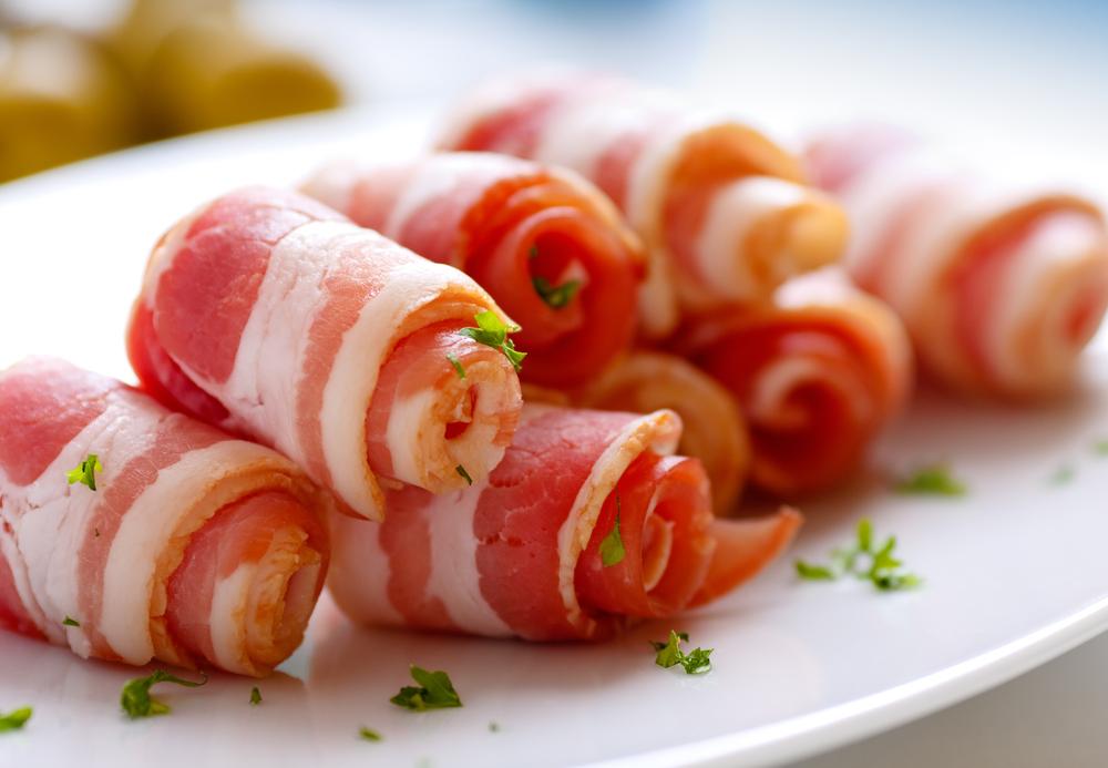 Wenn Sie ein Fest mit starkem Alkohol planen, ist dies ein köstlicher und schneller Snack. Wie für das vorherige Gericht brauchen Sie einen Salo mit Fleischvenen. Kümmern Sie sich auch um ein gut spitzes Messer, denn die dünnen Stücke, die Sie schneiden, desto schöner wird alles auf den Tisch schauen. Die Zubereitung ist elementar: Es ist notwendig, eine Gurke in einem Fett zu rollen und einen Spieß zu befestigen. Das Beste für Gerichte entsprechen kleinen eingelegten Curren.