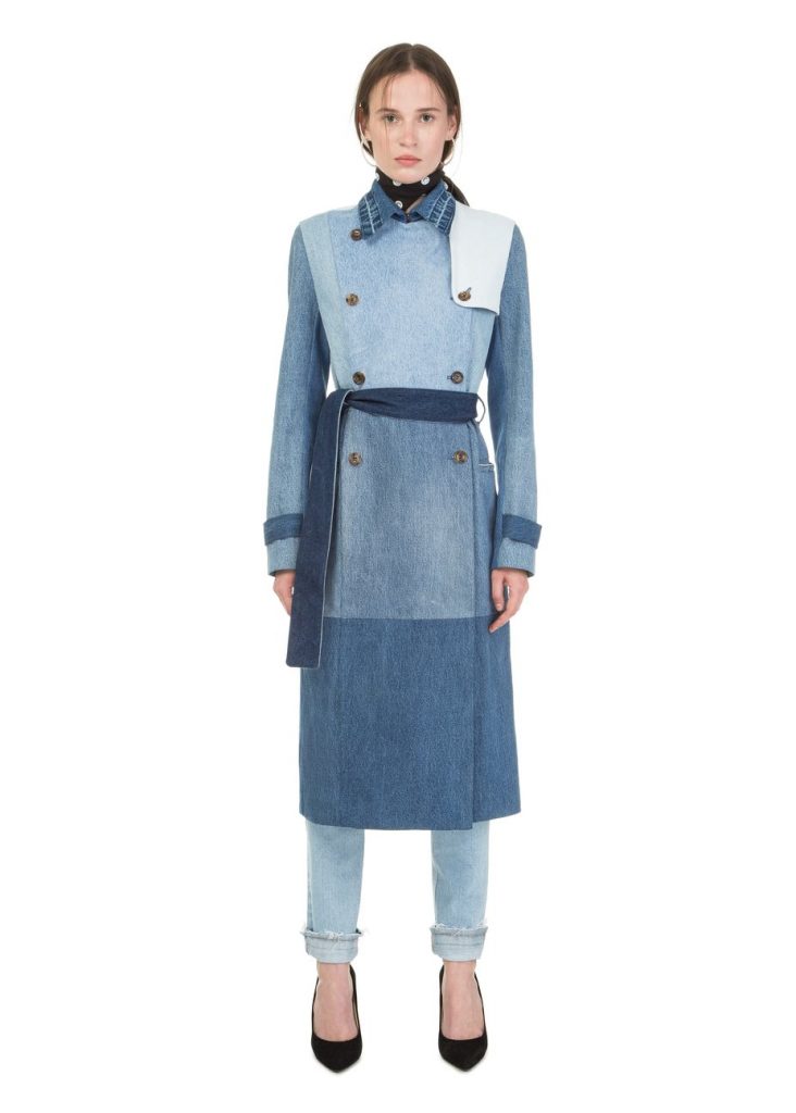 9. Recycling-Jeans-Mantel, der auch in der Marke des Markenstils ausgeführt wird - mit Jeans-Shreds. Genau wie andere Modelle erweist sich dieser Mantel, dass manchmal alte Jeans erzeugt - nicht so eine erfolgreiche Idee. Vor allem, wenn man so steil tun kann.