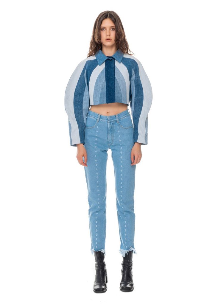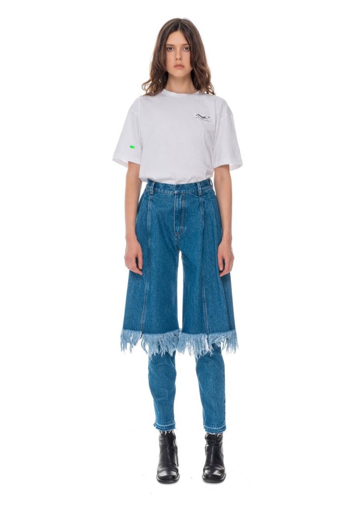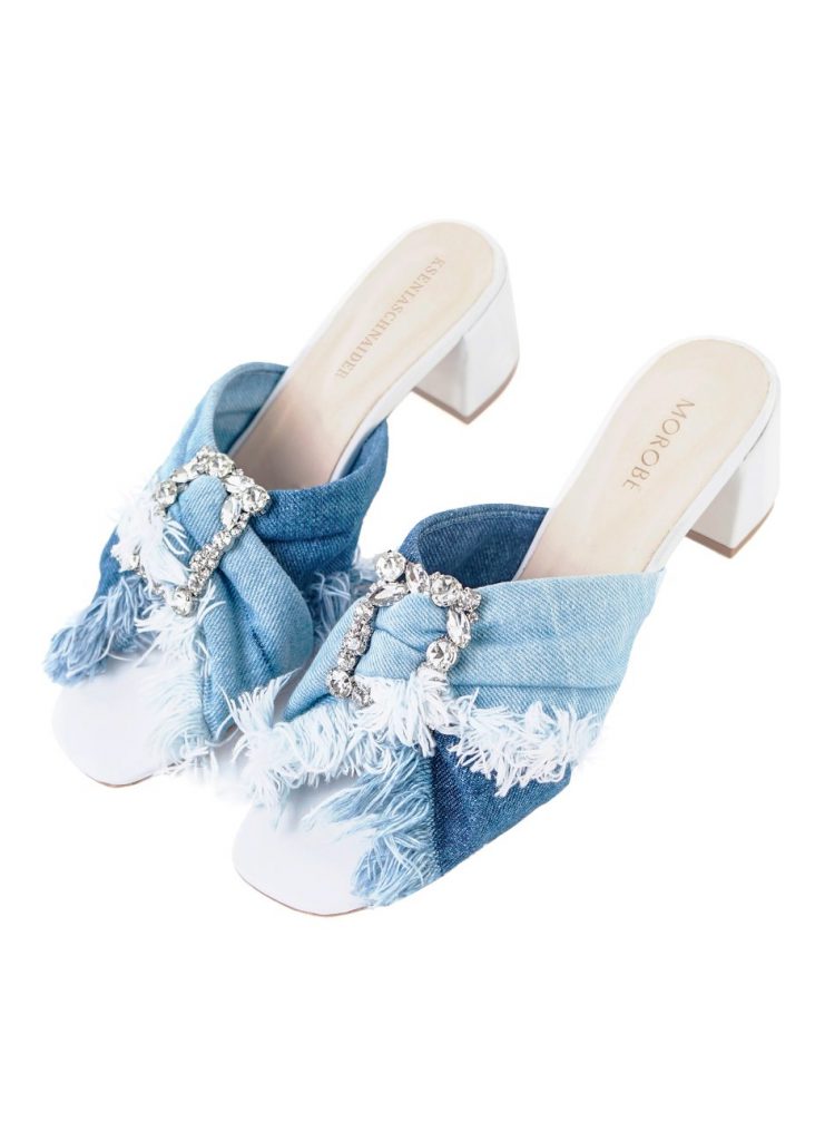 8. Denim Muli in Kseniaschnaider X Morobé Collapse. Niedrige Fersen und schneeweiße Fransen machen ein solches Modell unglaublich stilvoll!