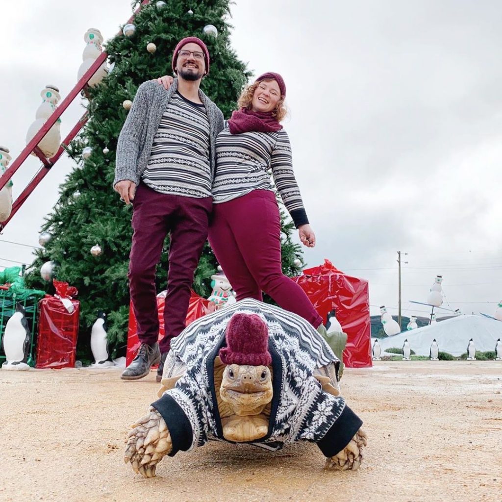 Manche Menschen tragen ihre Hunde oder ihre Katzen, um sie in sozialen Medien zu genießen. Andere Leute schmücken ... anscheinend Schildkröten.