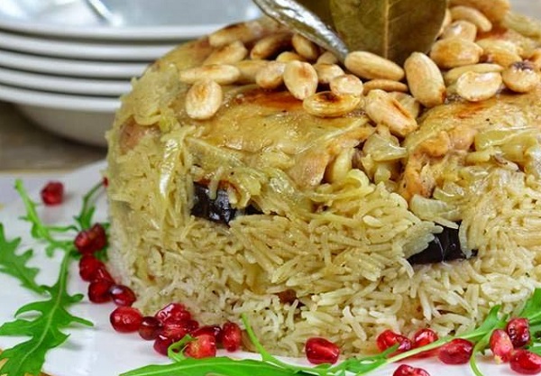 Mansaf ist ein traditionelles Gericht in Jordanien und einem berühmten nationalen Stolz. Das cremige Teller besteht aus gemischtem Reis mit fettem Inland, separat von der Essenz des dicken Joghurts gekocht, der sich bis zum Kochen dreht. Füge große Fleischstücke bis zur Reife hinzu.