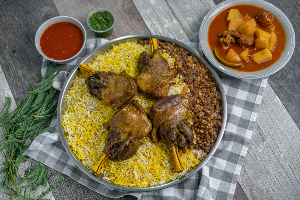 Das saudische Teller ist eine Aroma-Explosion, eine Mischung aus Gewürzen wie HAYL, Zimt, Ingwer und Nelken. Dieses großzügige Gericht befindet sich in der Mitte des Tisches in den Feiertagen in vielen arabischen Halbinsel-Ländern und nicht allein in Saudi-Arabien.