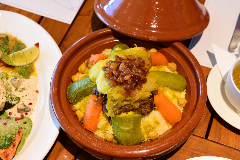 Marokkanisches Couscous ist eines der beliebtesten Gerichte in Marokko. Es ist sicherlich der erste, der in den Sinn kommt, wenn Sie über marokkanische Küche sprechen. Circassies boten traditionell am Freitagnachmittag an und wurden jetzt an jedem Tag zufällig gegessen. Der Ursprung dieser Barberry-Mahlzeit, die traditionelle Version von ihnen besteht aus Rindfleisch, manchmal Hühnchen, vielen Gemüse und Impulsen (Zucchini, Drew, Bohnen, Linsen, Erbsen) und natürlich Weizen.