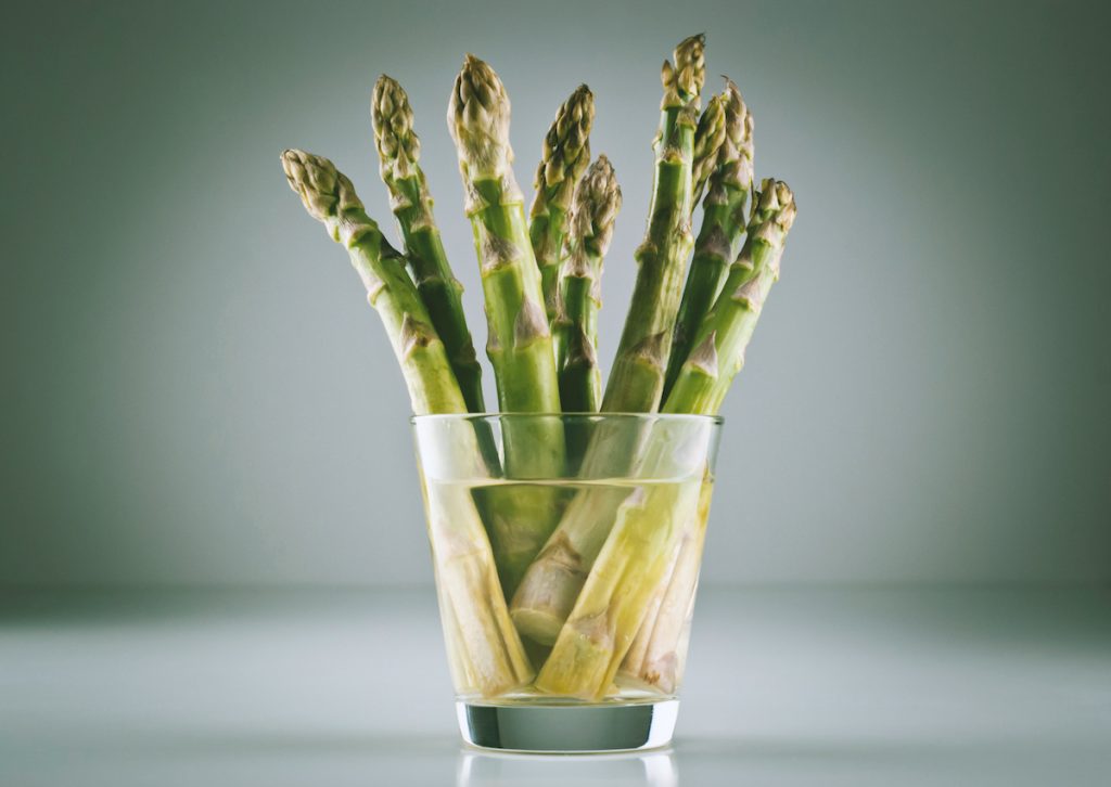 11. Wenn Sie Spargel haben, stellen Sie sicher, dass Sie sie entweder in ein feuchtes Papiertuch einwickeln oder in einem kalten Glas Wasser aufstehen, mit einem leicht feuchten Papiertuch gewickelt.
