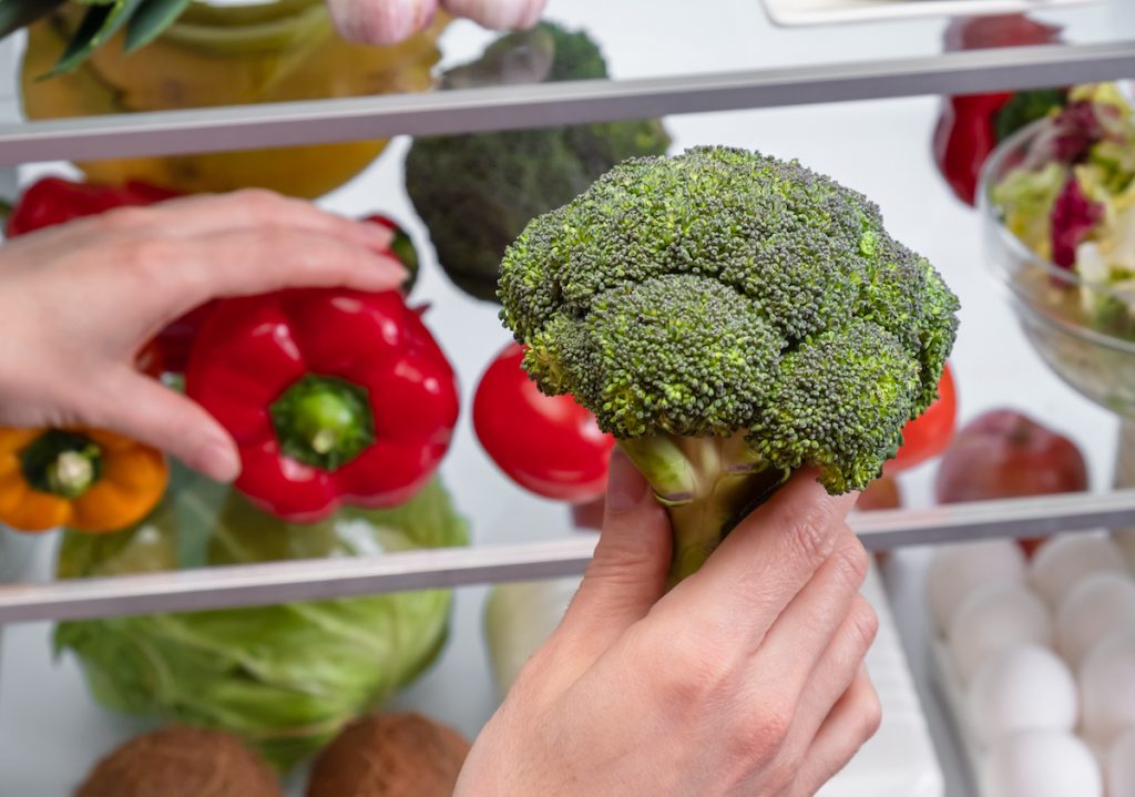 4. Produzieren, um im Kühlschrank aus dem Get-Go zu speichern, beinhaltet: Brokkoli, Beeren, Äpfel, Spargel, Brüsseler Sprossen, dunkle grüne Grüns, Salat, Erbsen, Granatapfel, Cilantro, Blindkohl, Karotten, Mais.