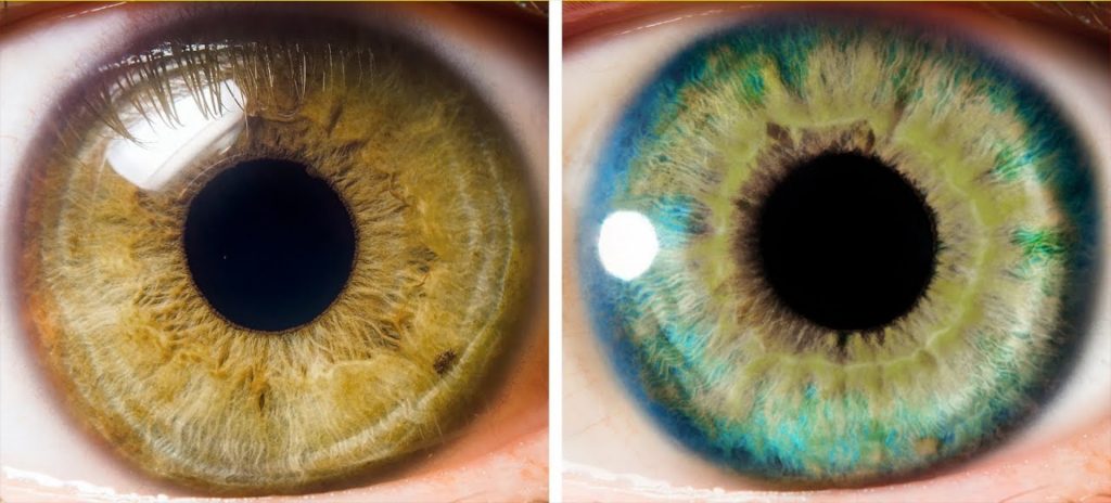 Bevor wir uns in all den Details des grünen Auges eintauchen, besser ein sehr wichtiges Konzept festlegen: Es gibt keine grünen Pigmente im Auge! Was die Farbe der Iris beeinflusst, ist Melanin, braunes Pigment, das auch für die Hautfarbe und das Haar verantwortlich ist. Die Neugeborenen, zum Beispiel wenig Melanin, und aus diesem Grund neigen ihre Augen dazu, blau bläulich zu blauen. Je größer die Konzentration von Melanin in Iris, dunkler ist die Augenfarbe. Wer eine etwas größere Menge Melanin hat, wird eher eine grüne Iris als blau haben. Das bedeutet, dass jeder, der dunkle Augen hat, ein schönes blaues Recht unter ihren Augen verbirgt.