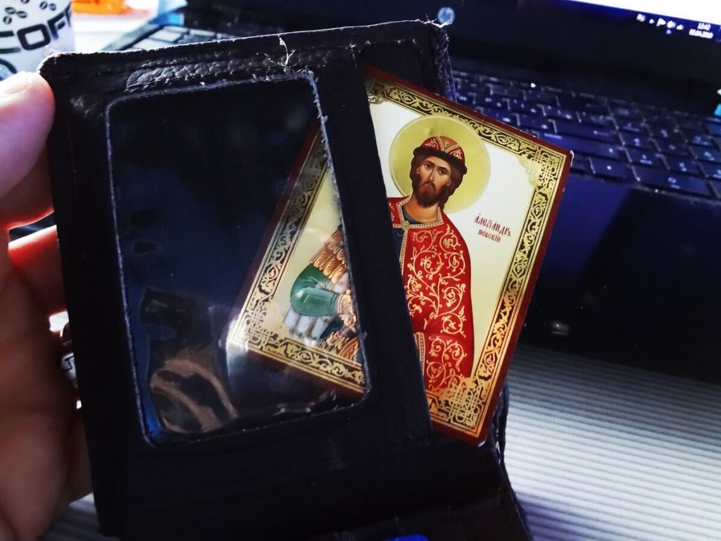 Bewahren Sie die Bildern der Heiligen in einer der schmutzigsten Lagern auf (auf Papierbanknoten lebt die meisten Bakterien) - nicht die beste Lösung. Seien Sie umsichtig, hängen Sie das Symbol an der Wand auf oder legen Sie in einem kleinen Rahmen auf den Tisch.