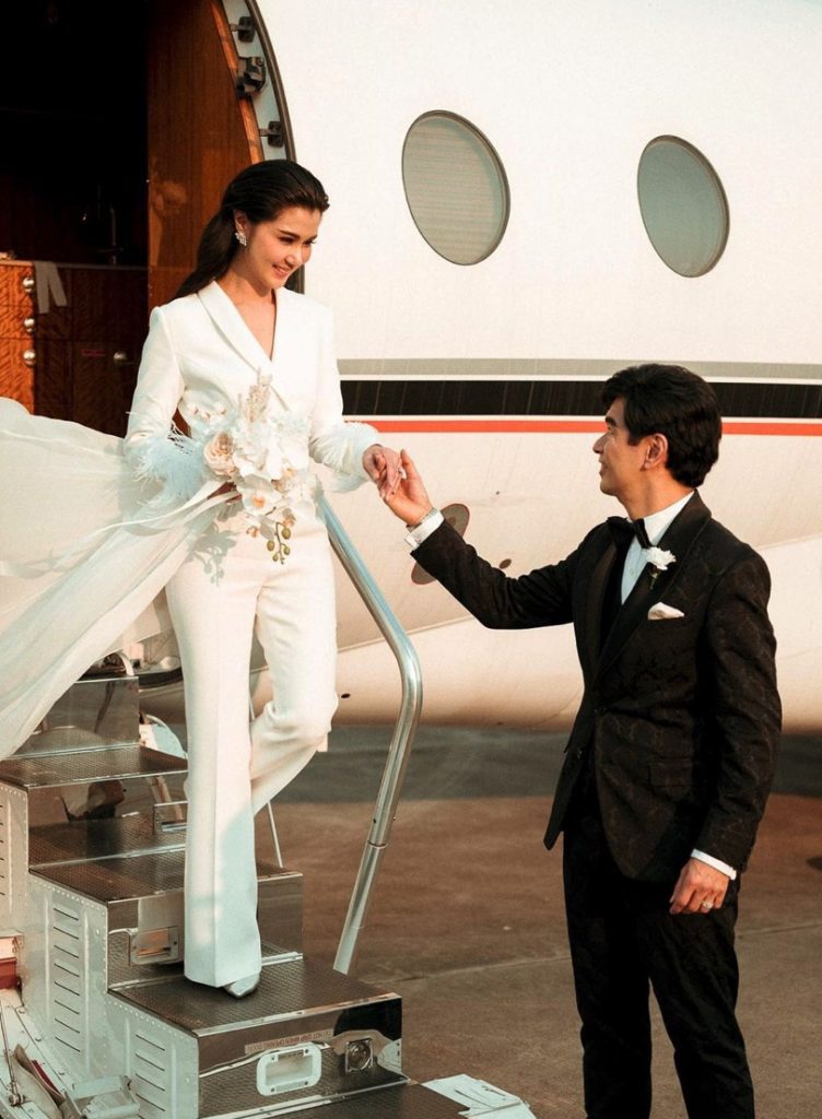 Ich muss ihr zugeben, dass das Set, das sie in ihrer Ehefeier auf dem privaten Flugzeug trägt, cool und sehr schick aussieht. Welches ist das Schneidwerk des Sees-Luz-Shirts, das die Arbeit thailändischer Menschen ist, durch die sie die Bedeutung der Serie später offenbarte, die ein Satz ist, der sie zu entwerfen, ähnlich wie die Serie von Elvis Presleys, die der Stil ist, der Jeep setzt aus. Die Show ist oft und sie fühlt sich wie ein junger Jib in der Nähe und auch in der Nähe. Paillettendetails und Federn, die sich wie Phoenix fühlen, was sie mag, weil beide Bedeutung als auch das Design des Kleides sowohl schön als auch sehr weich ist