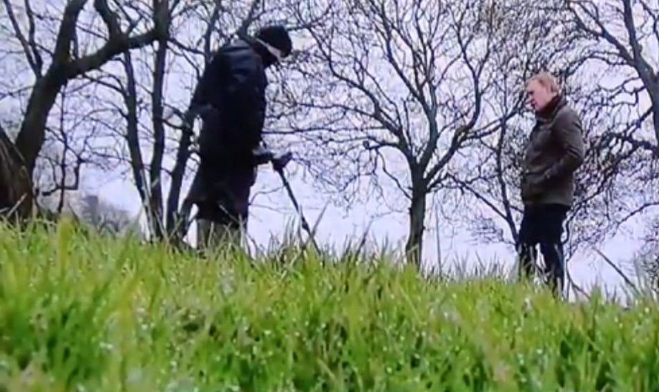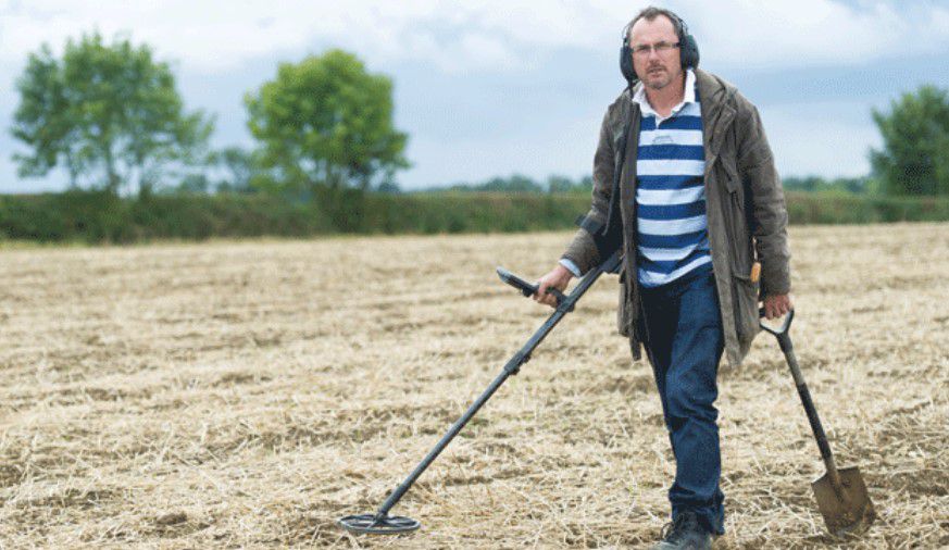 Er nahm diesen Metalldetektor heraus und begann, es auf dem Boden zu fegen. Zunächst konnte er nichts finden. Aber als er weiter bewegte, sah er einen wilden Bogen über dem Feld, und dann hörte er einen lauten Piepton, den sein Gerät machte. Der Mann begann zu Fuß, aber die Maschine piepte weiter.