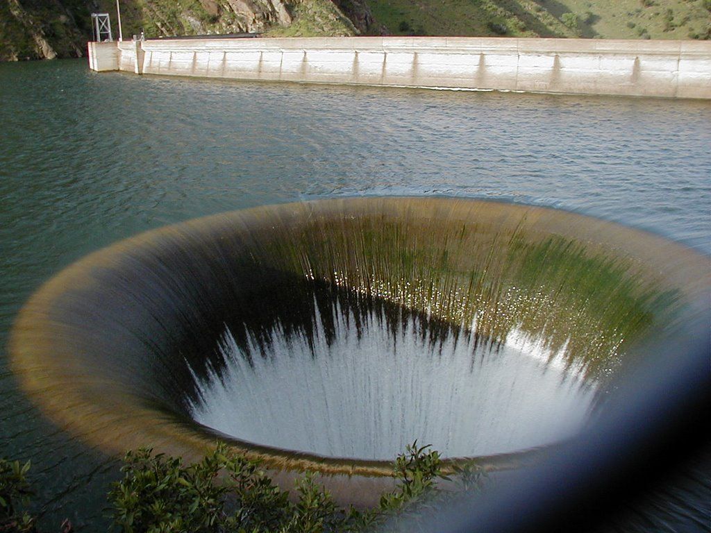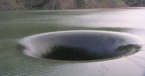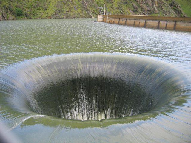 Das Design des Überlaufs wird Glockenmund bezeichnet. Der andere Volksname dieses Lochs geht von "Herrlichkeitsloch". Es ist irgendwie einen Trichter aus dem Damm. Das Loch ist 28 Fuß an der Unterseite und dehnt einen Durchmesser von bis zu 75 Fuß auf. Jetzt werden wir erfahren, warum das Bild eines Whirlpools auftritt, wenn das Wasser ein bestimmtes Niveau im See erreicht.