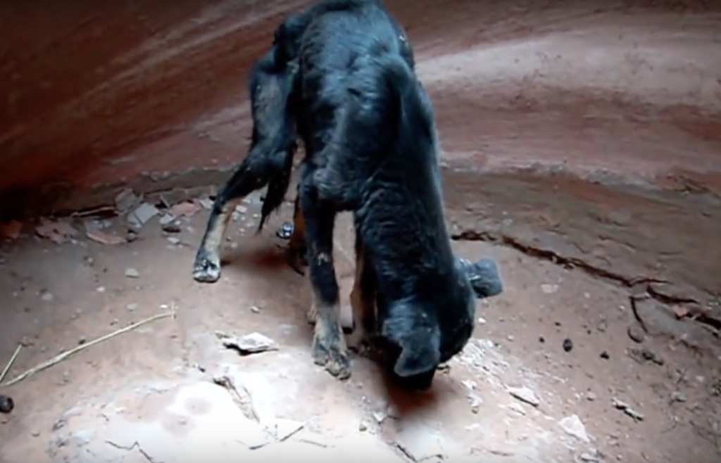 Also, was Zachary von der obigen Seite sah und die Quelle des Geräusches war ein Hund. Er war schockiert, einen Hund an einem solchen Ort zu sehen. Der Hund hatte keine Schmerzen, fühlte sich aber definitiv einsam. Der Hund sah nicht sehr gut aus, Zachary konnte das leicht sehen.