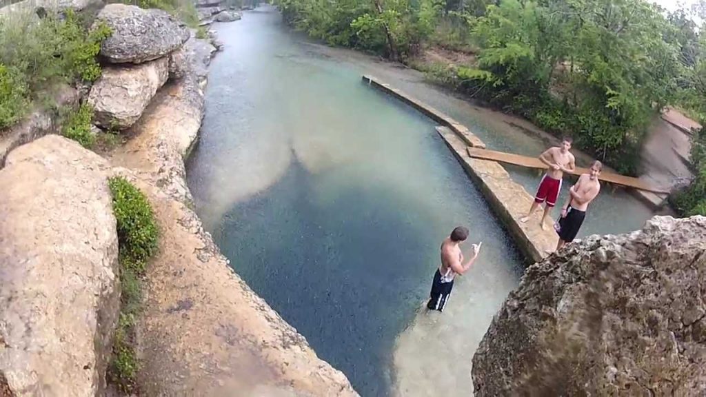 Carl, der im Frühlingszweig lebt, erzählte Texas im Interview mitTägliche Post,"Jacobs Brunnen ist ein ewigerer artesischer Frühling, der Cypress Creek füttert. Wenn Menschen die beiden Jungen ansehen, die den Sprung machen, sehen sie das Wasser nicht. " Er erklärte es mit diesem beeindruckenden Schuss, den er damals übernahm. Nehmen Sie sich einfach einen Moment und schauen Sie sich dieses Bild an.