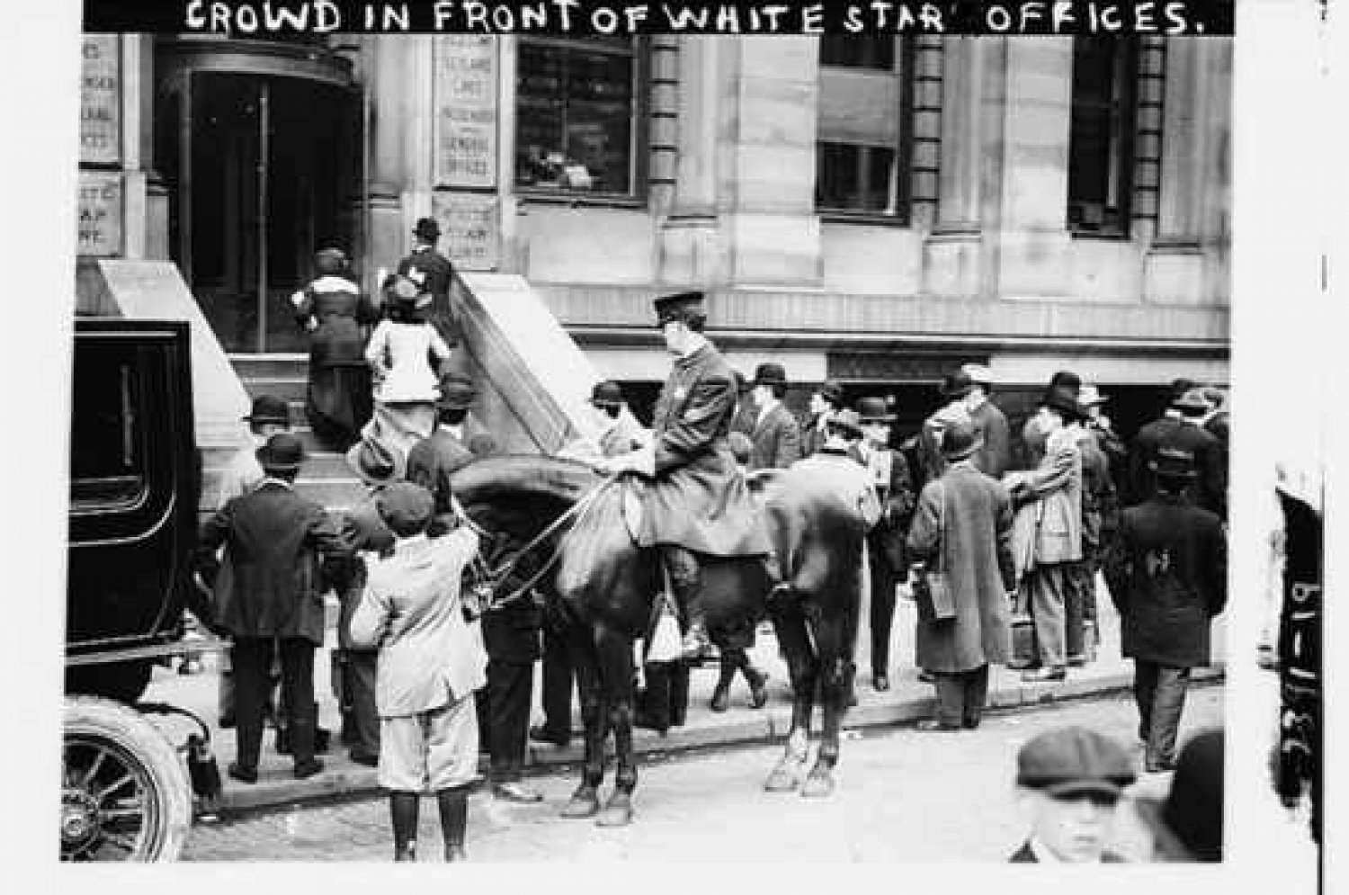 White Star verwendete eine erstklassige Reederei, deren Popularität während des Endes des 19. Jahrhunderts und Beginn des 20. Jahrhunderts erhoben werden. Das Unternehmen hatte die Hälfte der Titanic in seinem Besitz befindet. Dieses Bild zeigt eine Menschenmenge steht direkt vor den Firmenbüros. Dieses Bild wurde unmittelbar nach dem Menschen über die Katastrophe gelernt genommen.