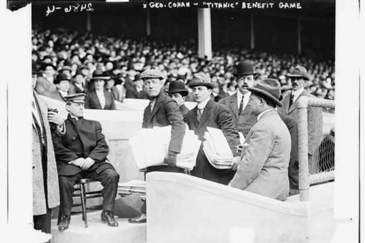 George M. Cohan, der einen amerikanischen Entertainer war, kann in diesem Bild mit einem Bündel von Unikaten einer Zeitschrift zu sehen. Dieses Bild wurde an einem Sonntag in New York genommen. Er verkauft diese Kopien nur zu sammeln Mittel, um finanzielle Unterstützung für die geretteten Passagiere zur Verfügung zu stellen und ihre Angehörigen.