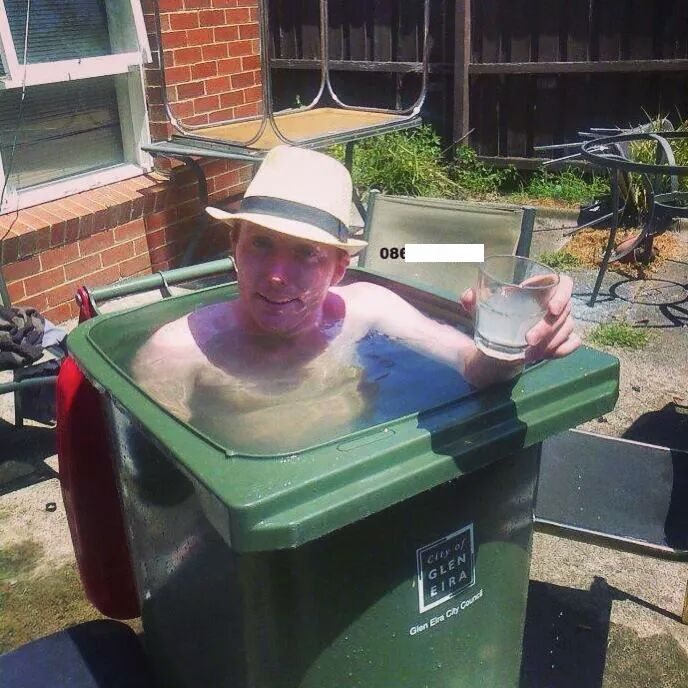 Wir alle brauchen eine Art Flucht aus Sommern. Und wenn ein Mann zu faul fühlte, bis das Schwimmbad zu fahren, benutzte er einen Abfallkasten seine eigene Badewanne zu machen. Ja, er liegt in ihm vielleicht nicht nach unten, aber er scheint ganz gut, in ihm zu tun, nicht wahr?