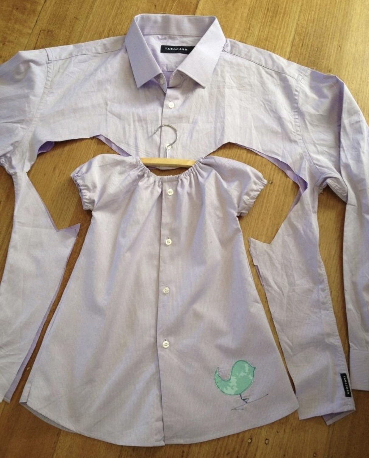 Es ist eine lustige Szene, wenn Kinder Elders Kleidung ausprobieren. Nun, ein kleines Mädchen, das das Hemd ihres Vaters trägt, hat ihr neues Kleid nur aus dem Hemd ihres Vaters gemacht! Dies muss zu ihrem Lieblingskleid geworden sein und eine Erinnerung, die sie gerne aufbewahren möchte, wenn sie wächst.