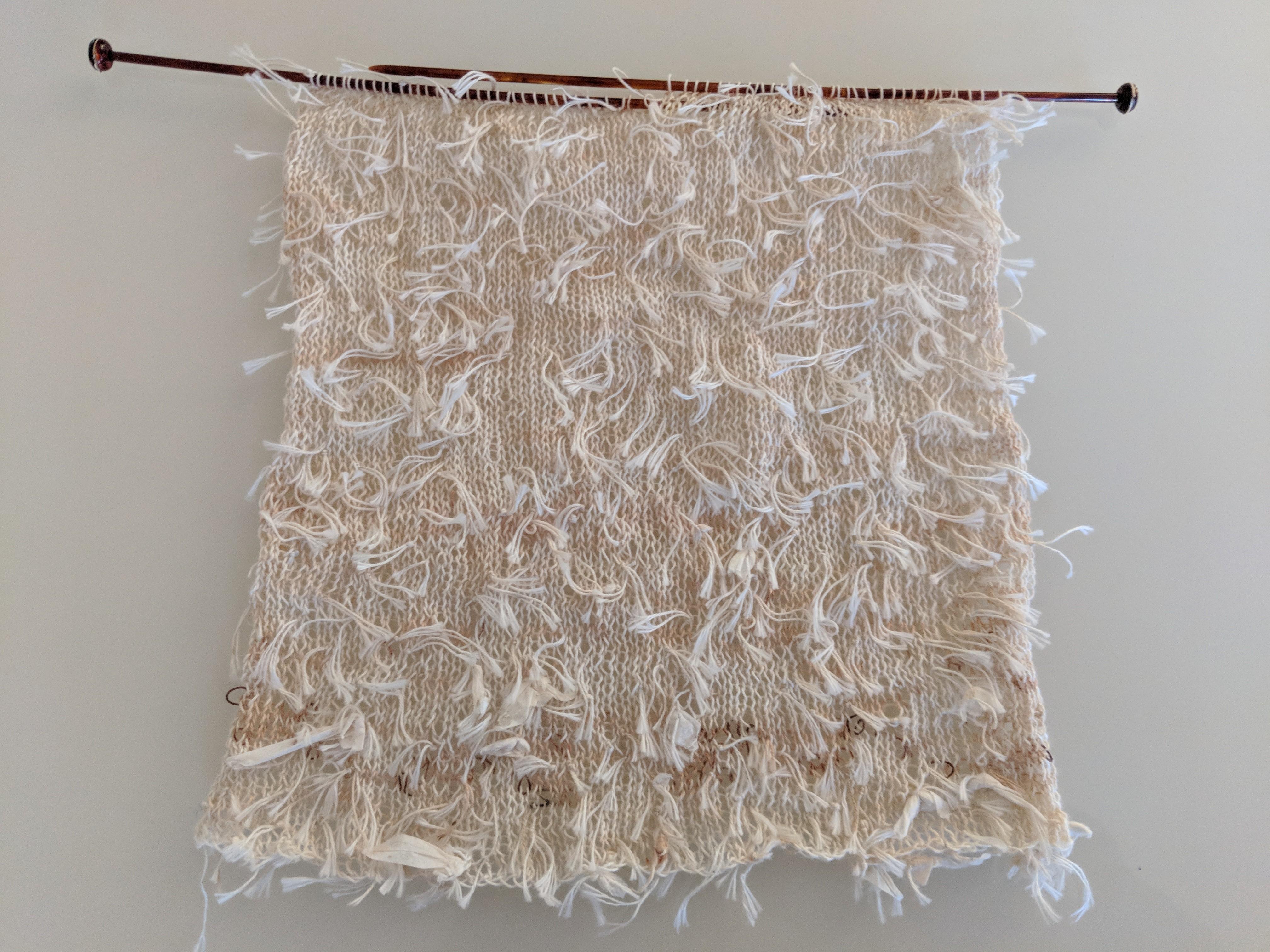 Ja, dieser Schal wird aus Teebeutel-Saiten gewebt. Eine Mama hatte dieses Gedankenblutung gedacht, den Müll in einen guten Gebrauch zu bringen. Sie wissen nie, ob sie das Glück hatte, Kamille zu riechen, als sie es trug.