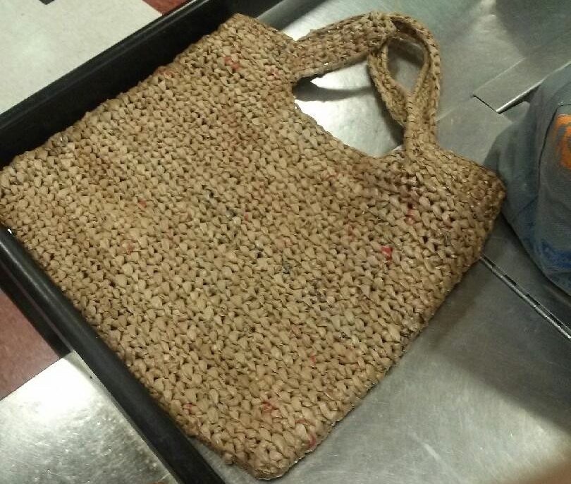 In jedem Haus gibt es eine Ecke, in der ein riesiges Bündel Polybeutel versteckt. Eine Dame weckte diese Lebensmittelbeutel und machte eine erstaunlich starke Einkaufstasche davon. Ich wünschte, wir wären talentiert.