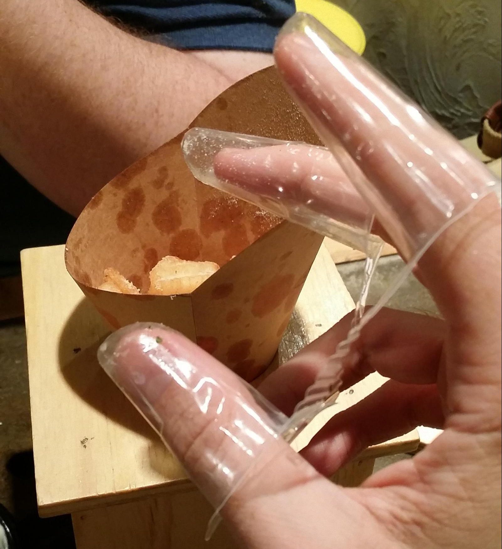 Nein, wir unterstützen nicht unordentliche Hände. Aber manchmal tut es nur weh, aufzustehen, um Ihre Hände zu waschen, und für diese faulen Tage können Sie diese Plastikfingerabdeckungen kaufen. Es ist nicht nur ein faules Tag, aber auch ein arbeitsreiches Tagessache. Wenn Sie eine Frist haben, um sich zu treffen, aber Sie sind zu hungrig, um sich zu konzentrieren, nehmen Sie den Wafer aus der Schublade und diese Handschuhe heraus. Einfach genug?
