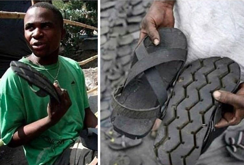 Ein afrikanischer Unternehmer machte eine hervorragende Idee in eine preisgekrönte Realität, indem Sandalen aus alten Reifen schaffte. Im über einen bestimmten Zeitraum hat der Mann einige erstaunliche Fähigkeiten entwickelt, von denen einer ohne Messwerkzeug genau groß ist!