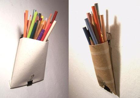 Cut-offs aus alten Rohren von Gesichtscremes haben Wunder für diese Mama, die das Aufnehmens aller stationeries müde war. Später, sie benutzte dicke Deckblätter und Papierstifte, die einen besseren Job gemacht.