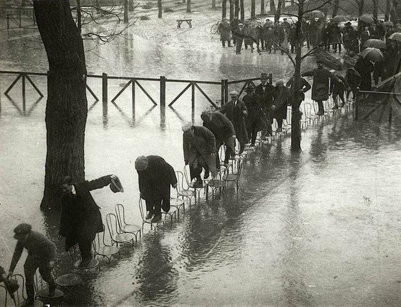 Seit der großen Flut von Paris im Jahr 1910 erlebt die Stadt jetzt häufiger Überschwemmungen. Eines der großen Probleme für die Einheimischen während der Flut ist der Flusswäsche, der buchstäblich auf der Straße überfließt, und dann müssen die Menschen sich für solche Ideen entscheiden, wie Sie auf dem Foto sehen können. Aber die Frage ist, woher kommen all diese Stühle?