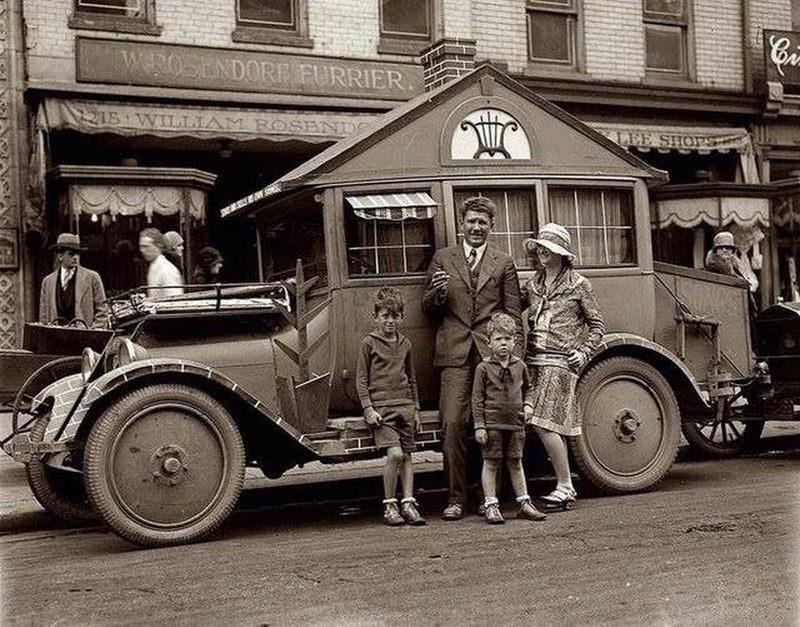 Obwohl moderne RVs nicht wie alles aussieht, was wir auf diesem Foto sehen. Wie montieren Sie sogar eine Familie? In den 1920er Jahren, die Familien, die mit der ganzen Familie im Urlaub reisen wollten, modifizierten ihre Autos in diese sogenannten RVs. Schön, aber verstopft.