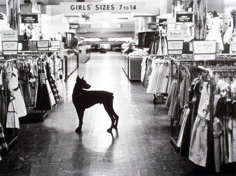 In der frühen und Mitte des 20. Jahrhunderts führten Guard Hunde den Job der menschlichen Wachen des Ladens. Dieses Bild stammt aus dem Kaufhaus von Macy in New York City, 1954. Hunde wurden wegen ihrer lauten Bellen in den Laden gesetzt, wenn jemand klug jemals versucht hat, etwas zu stehlen. Dobermann Pinschers und Deutscher Schäferhund waren ihre erste Wahl, weil sie von der Situation süß und scharf sei, wie sie süß und scharf war.