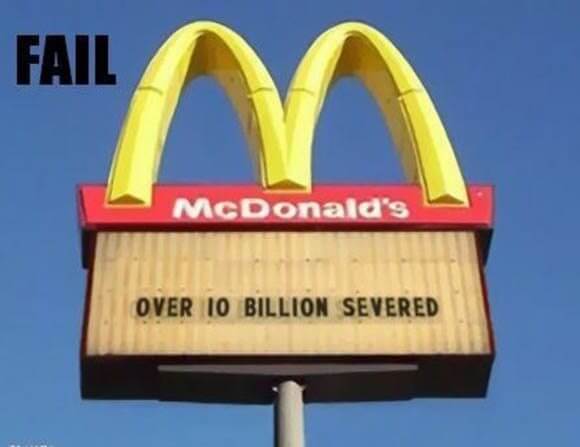 Arme McDonalds, kann nicht anders, aber wiederholen ihren Fehler. Wir kennen McDonalds als eines der größten Nahrungsmittel-MNCs auf dem Planeten, und sie sind stolz darauf, aber ihre Beschilderungsfehler sind eine große Zeitscham. Warum versuchen sie nicht, das zu tun, was sie am besten sind, dh "dienen" Menschen, die uns nicht die Zahlen erzählen?