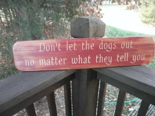 Hunde treu ihren Meistern immer treu, aber man sollte nicht immer ernsthaft bellen. Also ist dieses Board ein lustiger Jibe bei denen, die ihren Hund verlassen lassen, um andere zu bewegen und andere zu bedrohen.