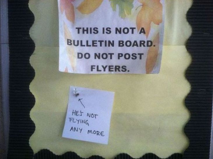 Der Sarkasmus kennt nicht gebunden. Es gab ein Poster, das Menschen verbot, um Flyer zu posten. Viele Leute erfüllten und viele Leute ignorierten es. Aber es gab einen von ihnen, der ihm nicht widerstehen konnte. Und möchten Sie wissen, wie er antwortet? Nun, die Antwort ist richtig vor Ihnen.