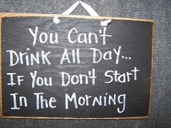 Der Tag beginnt mit dem Morgen. Um den ganzen Tag zu trinken, müssten Sie am Morgen anfangen. Tun Sie jetzt eine Sache, steigen Sie auf und trinken Sie ein Getränk.