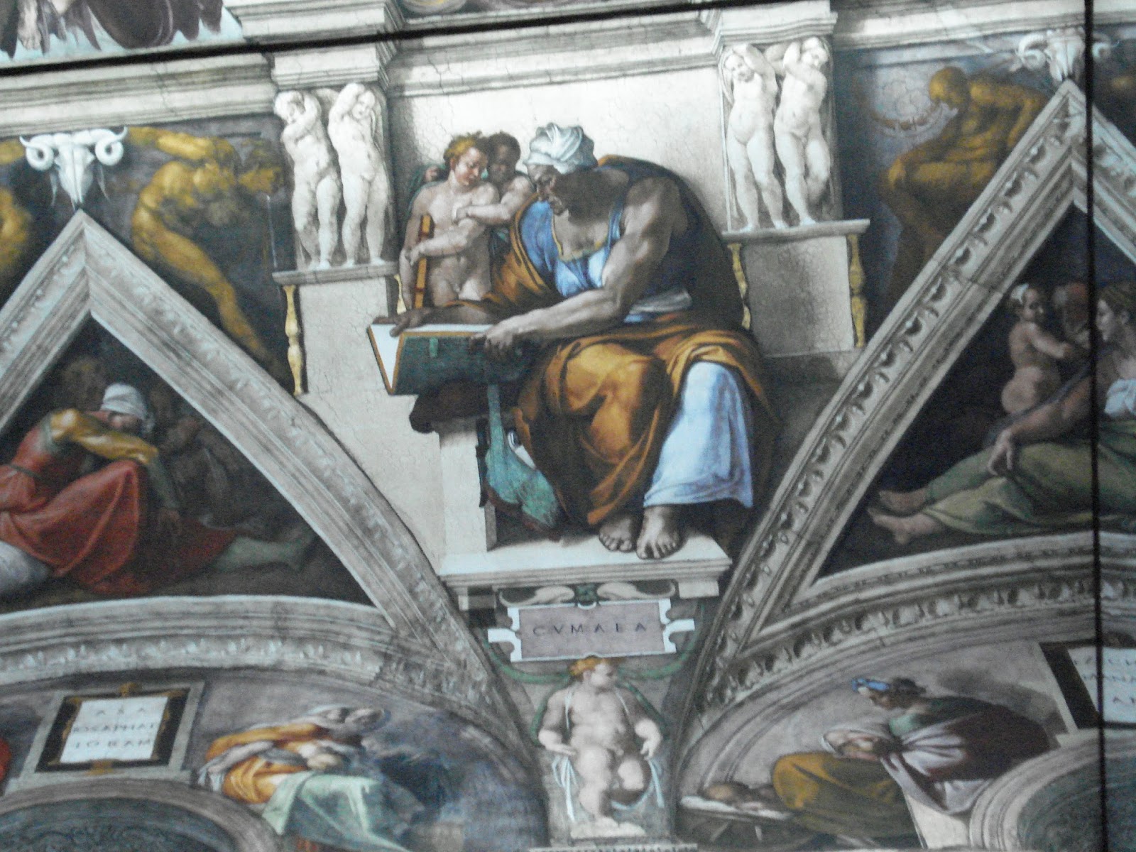 Der Name der Prophetin war cumaean Sibyl. Sie war nicht wie jeder andere Wahrsager. Die Frau war weithin bekannt für ihre Hellseher. Michelangelo hat sie in die vier Propheten inbegriffen, die er an der sistinischen Kapelle lackierte. Er zeigte ihr das größte unter ihnen.