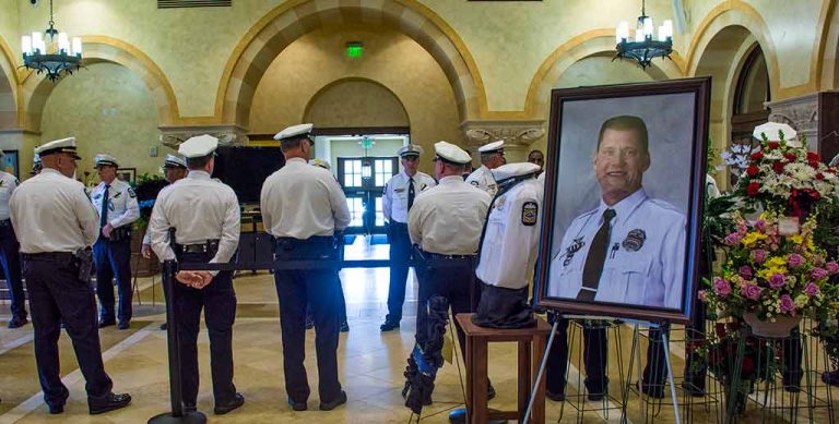 Officer Kevin Wheeler, der ein Freund von Officer Smith wurde fast 20 Jahre zuvor. Beide arbeiteten zusammen in der Luftfahrtgerät. Er war dort sein Tribut bei der Beerdigung zu zahlen. „Er würde das sein letztes Hemd für jedermann in der Einheit nehmen, denn irgendjemand wusste er, dass er auch außerhalb der Einheit helfen könnte. Die Art und Weise hob er das Team in schlechten Zeiten und brachte alle unsere Lebensgeister, es war einfach unglaublich“, sagte Officer Kevin.