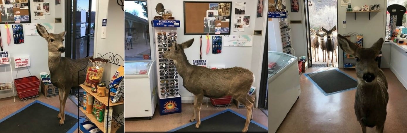Dies genau das, was dieser Hirsch tat. Zunächst kam sie und suchte die Ware und ihre Qualität zusammen mit ihren Preisschauen und dann raus. Nach einer Weile kam sie mit ihrer ganzen Hirschfamilie zurück, um etwas von der Sonnenbrille auszutreten und vielleicht einen Snack zu haben.