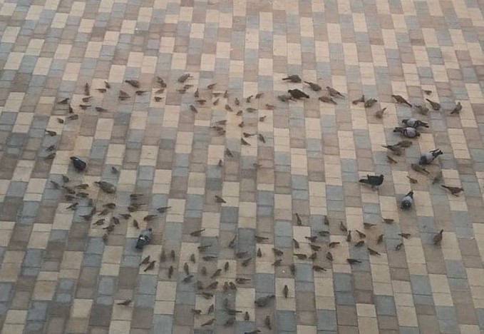 Dieser Kerl hat das Konzept der "glücklichen Frau gleich ein glückliches Leben" in seinem Kopf gesetzt. Dieser Kerl platziert das Essen der Vögel am Morgen. Als seine Frau aufwacht und das erste, was sie sieht, ist, dass eine Herde des Vogels ein Herz bildet. Dieser Mann ist ein echter Held, der den Vögeln Essen zur Verfügung stellte, während seine Frau dabei glücklich ist.