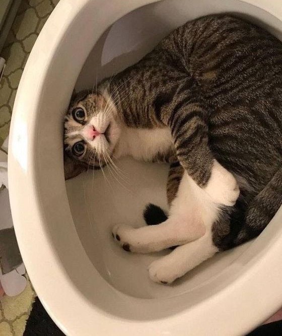 Katzen sind immer bekannt dafür, an sehr seltsamen Orten zu gelangen und hauptsächlich stecken zu können, und dann ist es wirklich schwer, sie draußen zu ziehen. Wenn ein Haushalt neue Sanitärwaren erhielt, musste diese Katze versuchen, in jeden einzelnen von ihnen zu passen und dabei stecken und musste dann herausgezogen werden.